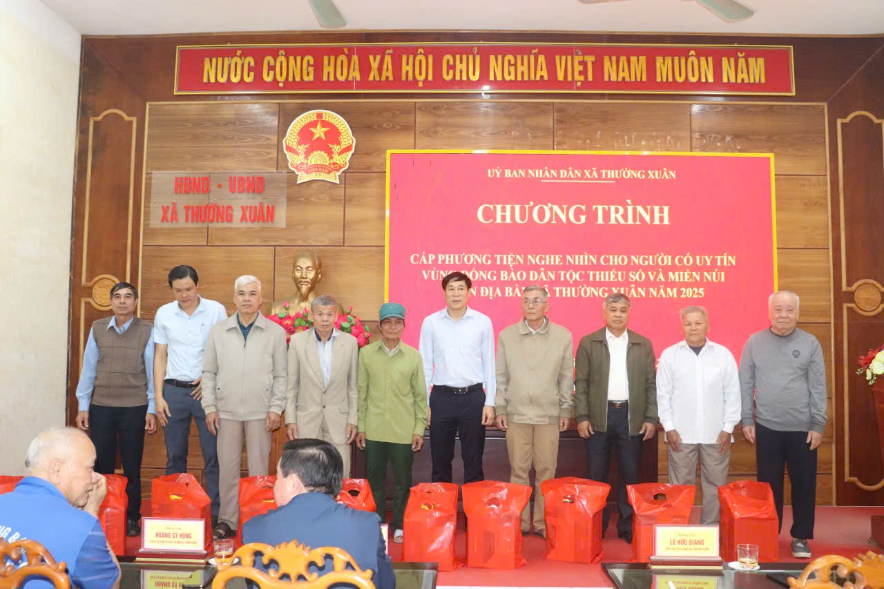 Tại Chương trình, đại diện lãnh đạo Đảng ủy, UBND xã Thường Xuân đã trực tiếp trao tặng các phương tiện nghe nhìn cho người có uy tín, khẳng định vai trò cầu nối quan trọng của họ giữa chính quyền địa phương và người dân trong cộng đồng. Các phương tiện này được kỳ vọng sẽ hỗ trợ đắc lực cho đội ngũ người có uy tín trong việc nắm bắt thông tin, truyền tải kiến thức pháp luật và các chính sách phát triển kinh tế - xã hội, góp phần giữ gìn an ninh trật tự, bảo tồn văn hóa dân tộc.